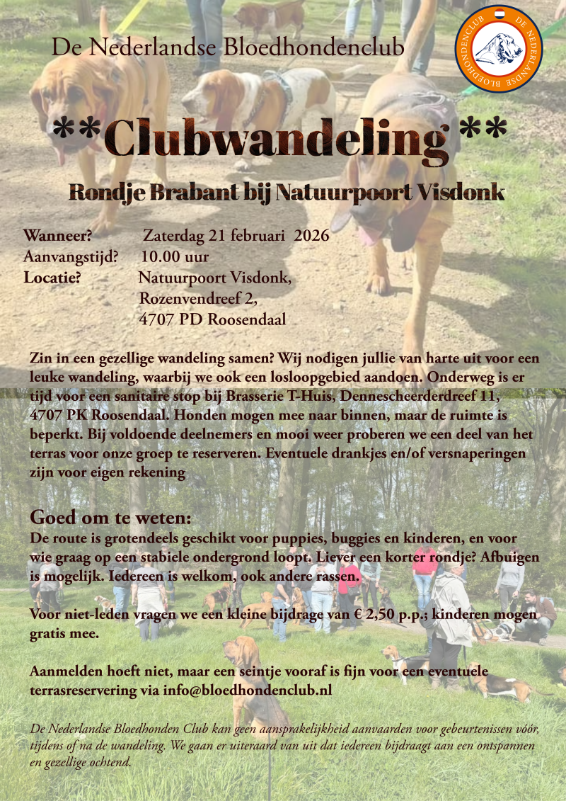 De Nederlandse Bloedhondenclub is er voor liefhebbers, eigenaren en iedereen die het ras een warm hart toedraagt.